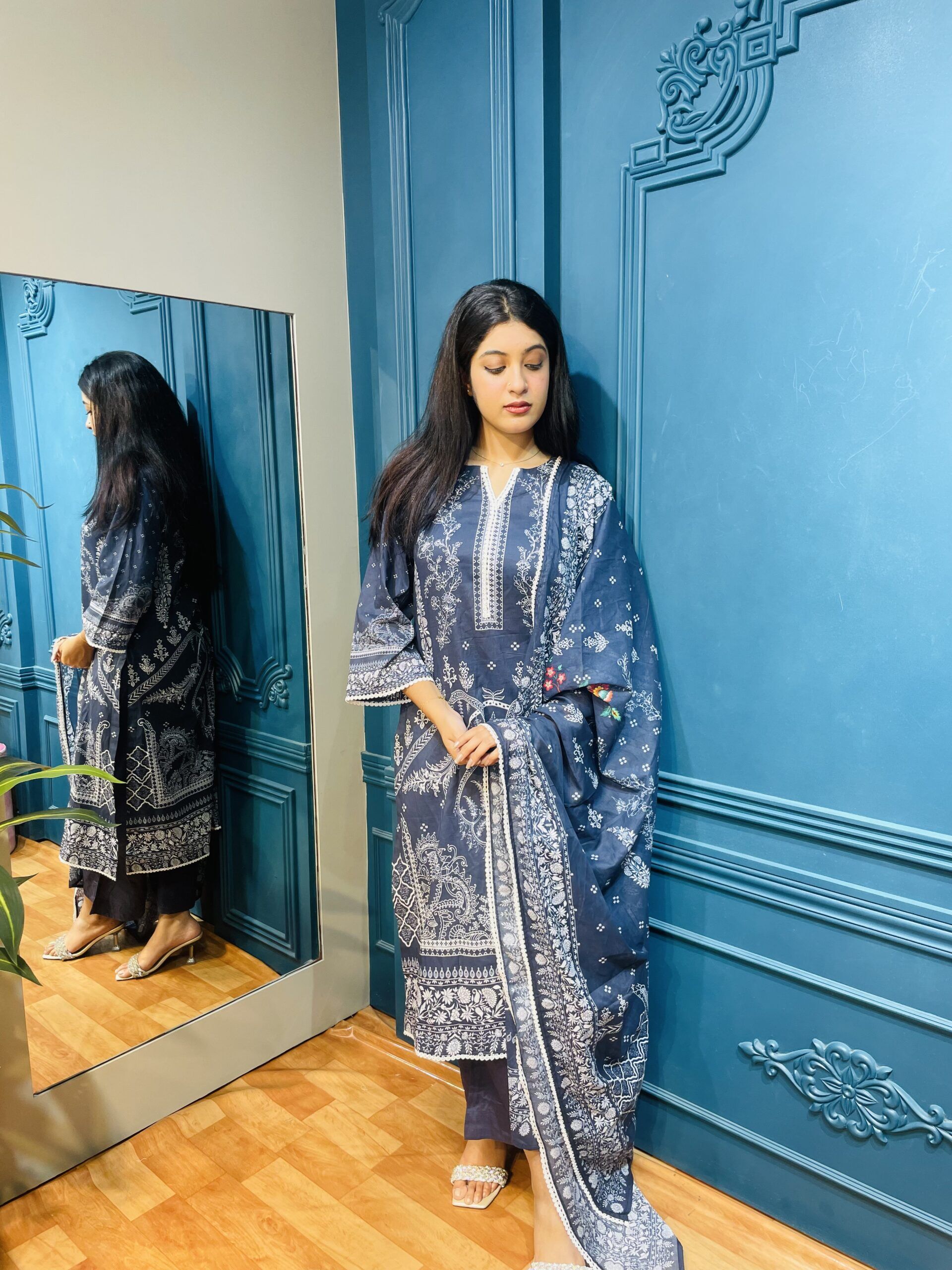 A lightweight chiffon or cotton dupatta featuring subtle prints or borders for the perfect finish