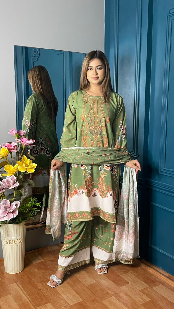 β¨ This premium Floral Silk Suit in Bangladesh is crafted from imported digital printed silk, offering a soft and elegant drape. The kameez and trouser feature a seamless blend of comfort and style, while the digitally printed texture dupatta adds a touch of charm, making it perfect for parties, festive celebrations, and special occasions.